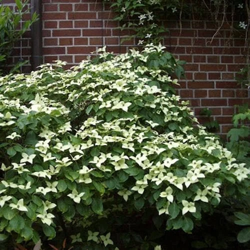 A beautiful, Dutch-bred cultivar of the Chinese dogwood, Cornus kousa var. chinensis China Girl is a small, slow-growing, deciduous tree with tiered branches, giving a graceful, architectural effect even in winter. The deep green, oval leaves turn brilliant shades of red and orange in autumn. In June, especially after a hot preceding summer, the tree is covered with a spectacular display of upward facing flowers, formed of four, creamy-yellow bracts surrounding a green boss of the true flowers. These are followed by bright red, strawberry-like (but inedible) fruits. A lovely tree for the smaller garden, good as a lawn specimen. Best left unpruned, Chinese dogood China Girls holds the RHS Award of Garden Merit.