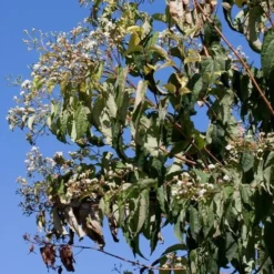 A member of the honeysuckle family and better known in North America, where it is sometimes called Crape Myrtle of the North, or Seven Son Flower. The scented, creamy white flowers fall with the first frosts but their calyxes remain, turning pink before darkening to burgundy. Butterflies love heptacodium almost as much as Buddleia.
