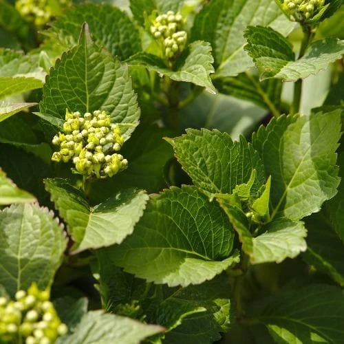 A rather elegant, compact hydrangea, Hydrangea macrophylla Vanilla Sky is a small to medium-sized, deciduous shrub, with a rounded, strongly branched habit. The large, ovate leaves are mid-green. From July to September, the shrub bears flattened mophead flowers, which emerge greenish-cream and develop cream, less brash than some more vividly coloured hydrangeas, and a good foil for other flowers. Protect hydrangea Vanilla Sky from cold winter winds, and leave the dead flowerheads over winter to protect the new buds, removing them in spring to a pair of healthy buds.