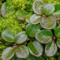 A spreading, shrubby honeysuckle, Lonicera crassifolia is an evergreen shrub with a low, mound-forming habit. The small, round, leathery dark green leaves are borne on bristly shoots. Small, yellow and cream, tubular flowers, scented, and with prominent stamens, are carried in the leaf-axils from May to July, and are sometimes followed by blue-black berries. Creeping honeysuckle is an excellent plant for ground cover.