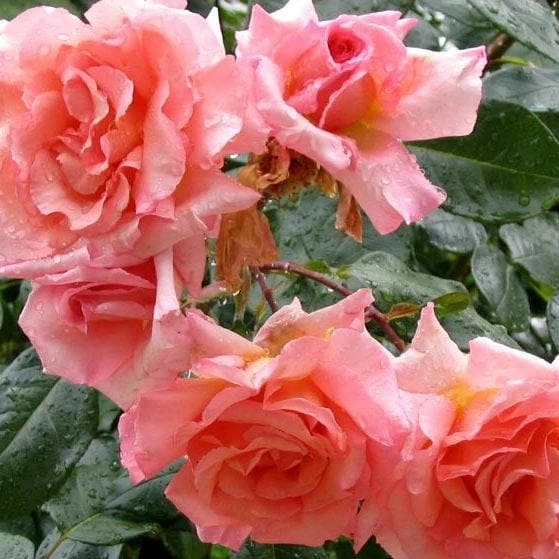 A superb, repeat-flowering climbing hybrid tea rose with large flowers and a rich scent, Rosa Compassion is a medium-sized to large, vigorous, deciduous climbing rose with a very upright habit and rather stiff stems, particularly good as a pillar rose. The foliage is a good, glossy, deep green on red young stems, a beautiful foil for the flowers. These are borne reliably and profusely from June to August, and are fully double, a lovely, coppery-apricot-pink, with a strong, delicious scent. Deadhead to prolong flowering, and, if growing on a wall, fan out and tie in shoots when young, as they become inflexible later. Healthy and reliable, climbing rose Compassion holds the RHS Award of Garden Merit.Â