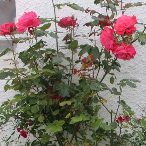 Large, semi double slightly fragrant bright pink flowers. Repeat flowering. Lightly fragrant. Rosa Galway Bay grows to 12ft.