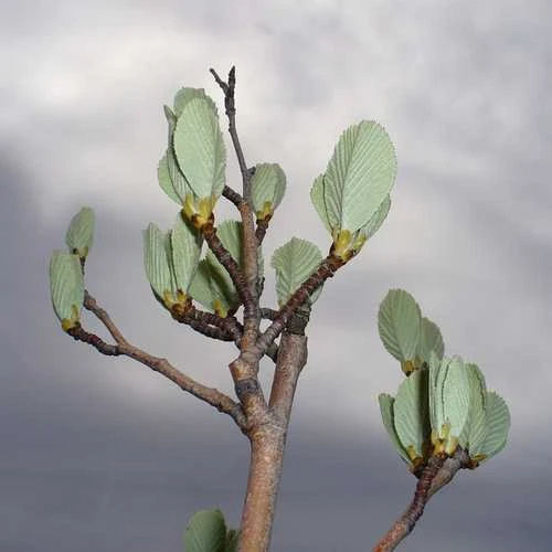 One of a few native Whitebeams, Sorbus aria being the most common with a large population in Co.Galway. It is a small to medium size tree with many points of interest – the leaves have a bright underside which gives it its common name; in Spring the creamy white flowers are host to many insects; in Autumn and Winter the bright red berries provide for many birds and even for the avid craftsperson, the timber is great for chairs and other small furniture.