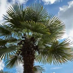 Syn. Chamaerops excelsa. Native to China, this is one of the hardiest palms. Trachycarpus fortunei slowly forms a single trunk with a head of large fan-like leaves up to 80cm wide. Ultimately tall growing, it produces sprays of pale yellow flowers on mature plants. Popular as a specimen in a tropical themed garden.